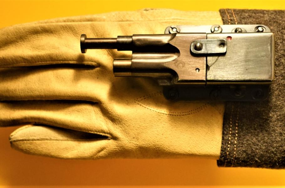 V závěru úspěšného filmu Hanebný pancharti od Quentina Tarantina si diváci mohou všimnout velmi zvláštních zbraní, jež dva z hrdinů použijí pro rychlou likvidaci německých strážných. Vyhlížejí jako kovová pouzdra připojená k rukavicím, obsahují zlamovací mechanismus a užívají se na doslova kontaktní vzdálenost, respektive při úderu. Ačkoliv mohou budit dojem nějaké groteskní filmové rekvizity, znalci je identifikují jako typ, který se nejčastěji nazývá Sedgley OSS .38.