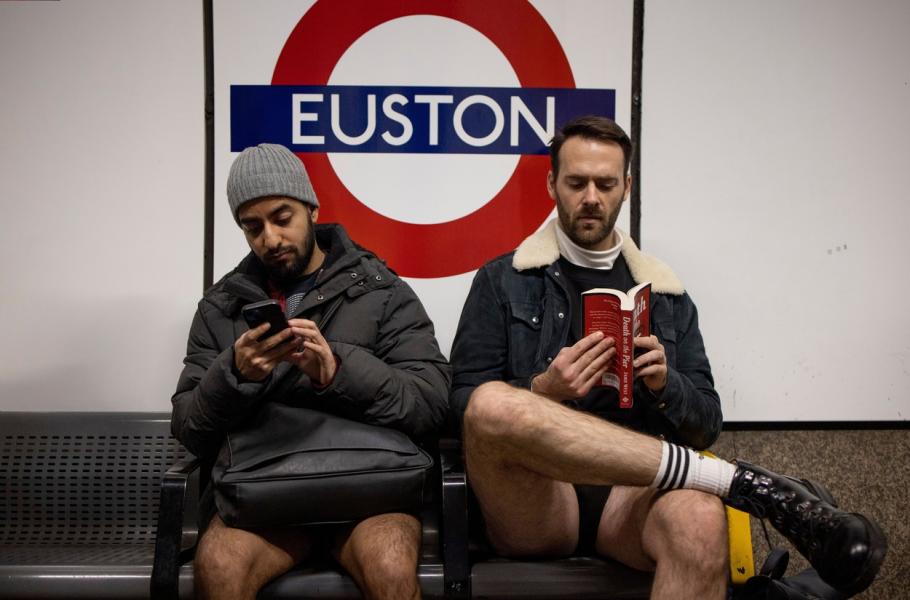 V londýnském metru se v neděli uskutečnila již desátá výroční „No Trousers Tube Ride“, tedy jízda bez kalhot, při které pasažéři cestovali metrem bez kalhot a sukní. Tradice vznikla v roce 2002 v New Yorku a od té doby se rozšířila do více než 60 měst po celém světě. Cílem recesistické akce je pobavit a rozesmát – sebe i spolucestující. Účastníci jsou proto nabádáni, aby volili pokud možno veselé spodní prádlo, které spolucestující neuráží.