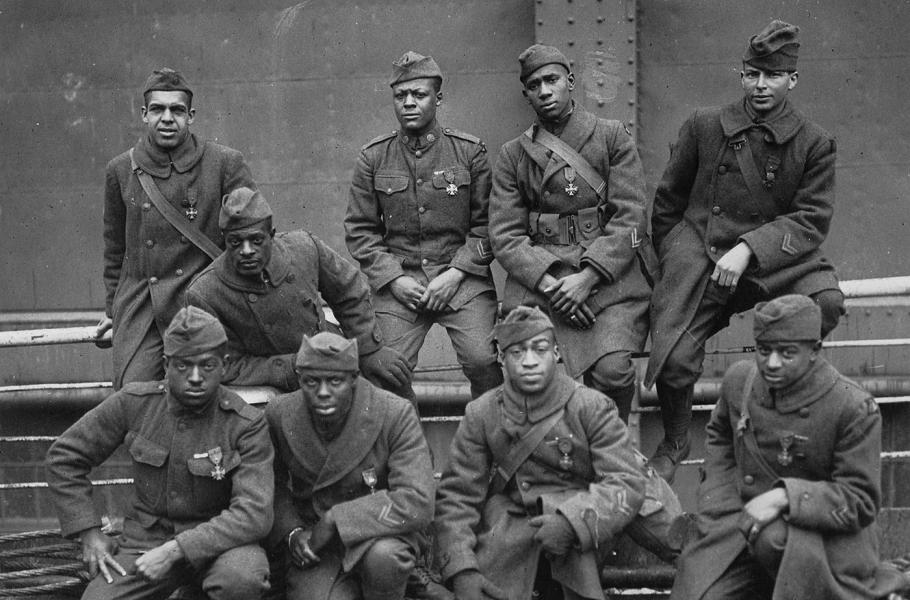 Včetně dobrovolníků odjelo s Pershingovými silami do Evropy asi 350 000 černochů. Obzvláštní pozornost si vysloužil 369. pluk, který se zrodil z 15. regimentu newyorské národní gardy a do Francie vyrazil mezi prvními jednotkami krátce po Vánocích 1917. Zprvu spadal pod 93. divizi, jenže v dubnu 1918 nadřízení rozhodli o podřízení afroamerických regimentů francouzské armádě. Důvod byl prozaický – mnozí bílí Američané odmítali sdílet stejný zákop s černochy.