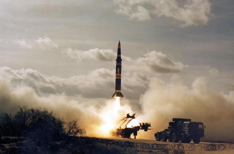 Z nových střel středního doletu Pershing II měli Sověti velké obavy. Na snímku Pershing II odpalovaný z vojenské základny White Sands Missile Range v Novém Mexiku, listopad 1982. (foto: U.S. National Archives, CC0)
