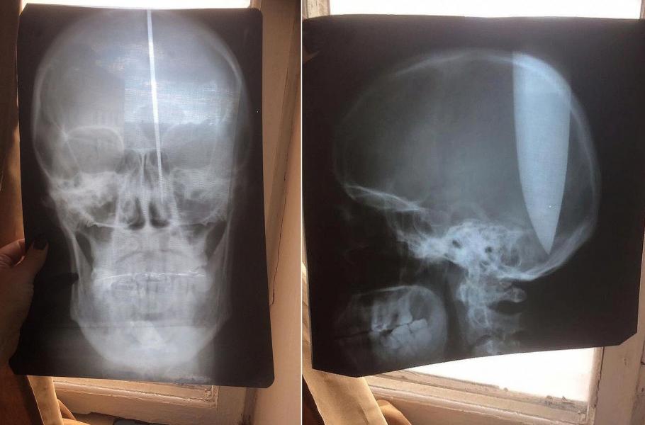 Následné vyšetření v nemocnici ukázalo, že čepel vězí uvnitř lebky 12 až 15 centimetrů hluboko. I sebemenší pohyb mohl způsobit nevratné poškození mozku nebo i smrt. Lékaři proto k zákroku přivolali specialisty z regionální neurochirurgie. Těm se nůž z lebky podařilo odstranit. Podle lékařů byla čepel přesně mezi oběma hemisférami a je tak poměrně velká šance, že zranění nebude mít žádné trvalé následky. Psychicky narušený muž je nyní v péči psychiatrů.