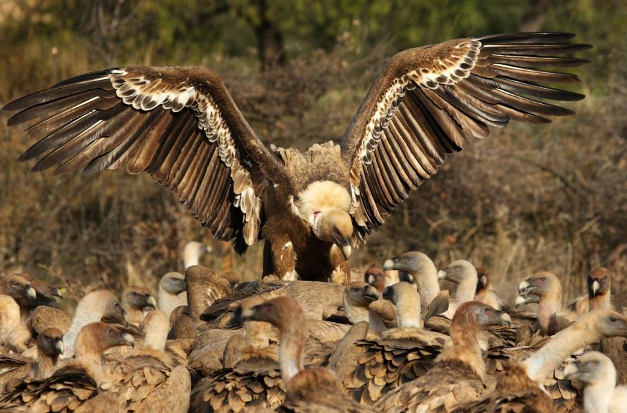 První lokalitou, kam na setkání s mrchožravými ptáky – hlavně supem bělohlavým (Gyps fulvus) – míříme, se nachází v Aragonii. Na pár dní zastavujeme na úpatí pohoří Sierra de Guarra, kde máme domluveno pozorování u novodobých „Muladeres“. Tento výraz označuje místa poblíž vesnic, kam farmáři od dávných dob sváželi uhynulá zvířata za účelem jejich likvidace mrchožrouty. O prastaré ekologii se nejspíš nedá mluvit, ale nebezpečí šíření nemocí si farmáři uvědomovali velmi dobře a supi byli na tomto způsobu získávání potravy do značné míry závislí.