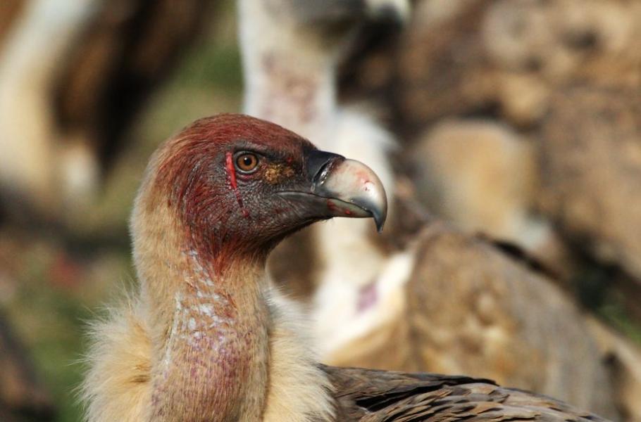 Majitel lokality se dokrmování supů a orlosupů věnuje již nějaký čas a zdejší populace si na pravidelný přísun potravy zvykla. Hukot džípu deroucího se do kopce bezpečně přilákal desítky supů bělohlavých do blízkosti krmeliště. Během krátké chvilky se celé hejno sneslo na zem a opět začalo ono žravé běsnění.