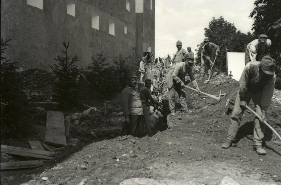 Italové v zajetí museli často vykonávat fyzicky namáhavou práci; tito muži kopou vodovod v Lublani. (foto: Wikimedia Commons, Peter Naglič, PDM 1.0)