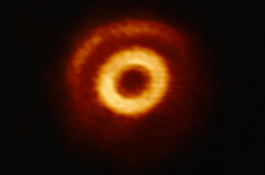 Obrázek z radioteleskopu ALMA ukazuje mladou horkou hvězdu V1247 Orionis, která je obklopená cirkumstelárním diskem z plynu a prachu. Disk se jeví jako složený ze dvou částí: z pěkně definovaného centrálního prstence a z jemnějšího půlměsíce ve vzdálenějších oblastech.