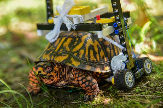 Zraněná želva dostala kolečkové křeslo postavené z Lega