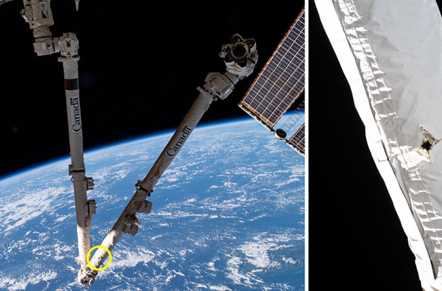 Jedna taková srážka byla odhalena před pár týdny, ve středu 12. května, při rutinní kontrole robotické ruky vesmírné stanice Canadarm2. Experti Kanadské vesmírné agentury CSA a NASA v těchto dnech analyzují snímky místa zásahu a hodnotí možné poškození robotické ruky, která byla zasažena malým kouskem orbitálního odpadu.