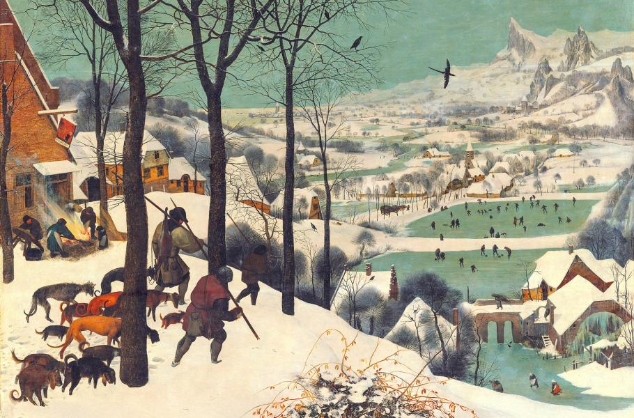 Obraz Lovci ve sněhu od vlámského malíře Pietera Brueghela staršího z roku 1565. (ilustrace: Wikimedia Commons, PDM 1.0)