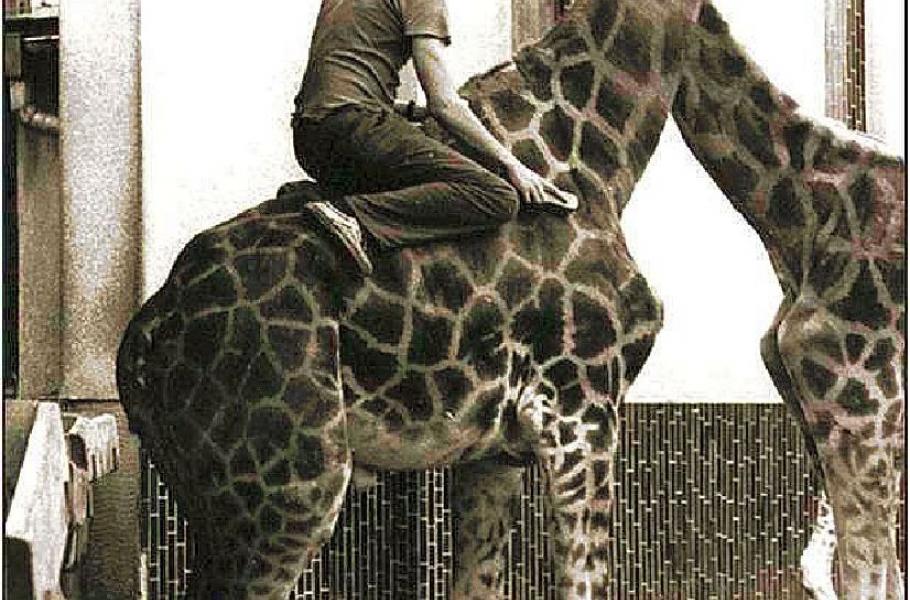 Ve vašem archivu je velmi netypická fotografie, na níž v jezdecké poloze sedíte žirafě za krkem. Skutečně lze žirafy ochočit do té míry, že na nich člověk může jezdit jako na koni?