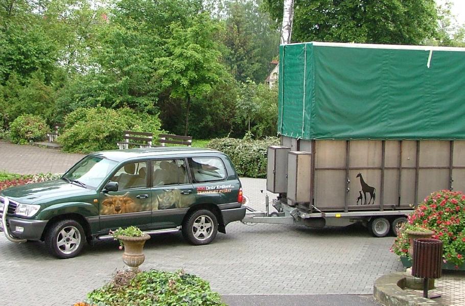 Přepravujeme je v kontejneru na speciálním podvozku. Rozměry kontejneru se řídí předpisy silničního provozu, takže nesmí být vyšší než čtyři metry. Žirafa přitom nesmí při jízdě z kontejneru vykukovat, takže pokud převážíme dospělého jedince, je v bedně mírně skloněn. To není vůbec pohodlné, a tak je občas nutné zastavit a nechat cestujícího protáhnout. Někdy jsme otevřeli i dvířka aby se žirafa napásla na okolní vegetaci. Dnes se ale snažíme transportovat jen mladé jedince, a předejít tak jejich nepohodlí.