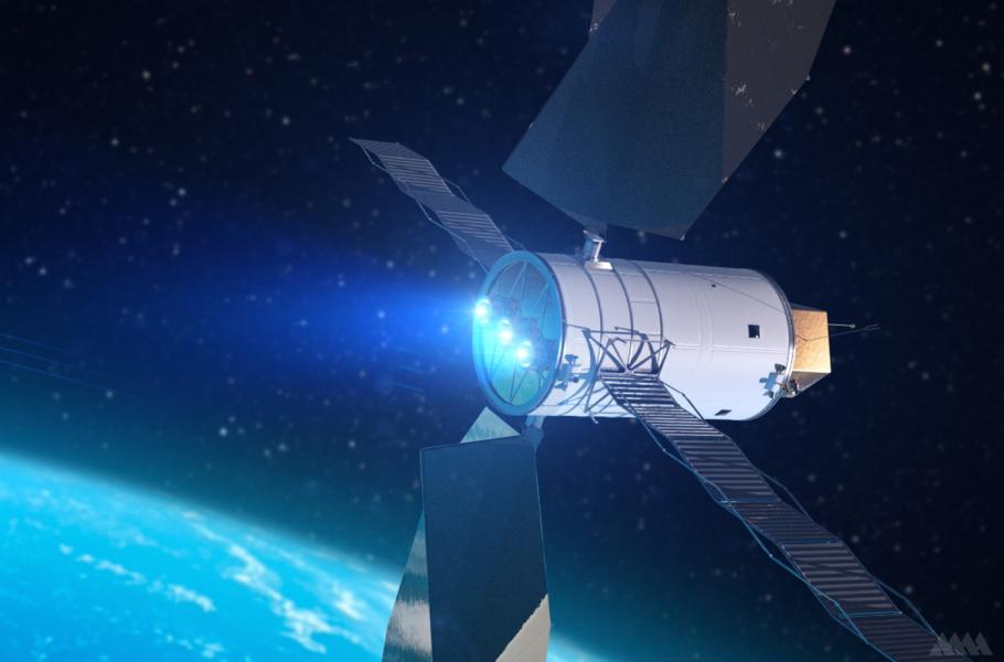 Hlavní výhodou iontového motoru je jeho nízká spotřeba a fakt, že se objede bez okysličovadla (tedy hmotnosti navíc). Nevýhodou jeho nižší tahová síla. (ilustrace: NASA, CC BY-SA 4.0)