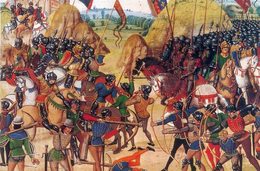 Není však pravda, že by král poslal Karla pryč do bezpečí, nebo že se tehdy třicetiletý Lucemburk stáhl z boje, když viděl, že francouzská strana prohrává. Naopak se vrhl do bitvy, ale byl raněn střelami anglických lučištníků, takže ho družiníci odvedli z bitevní vřavy, údajně proti jeho vůli. Příští den byl raněn ještě znovu při náhodné srážce s nějakým anglickým houfcem, a to už musel na několik dní ulehnout v blízkém opatství, aby se vyléčil.