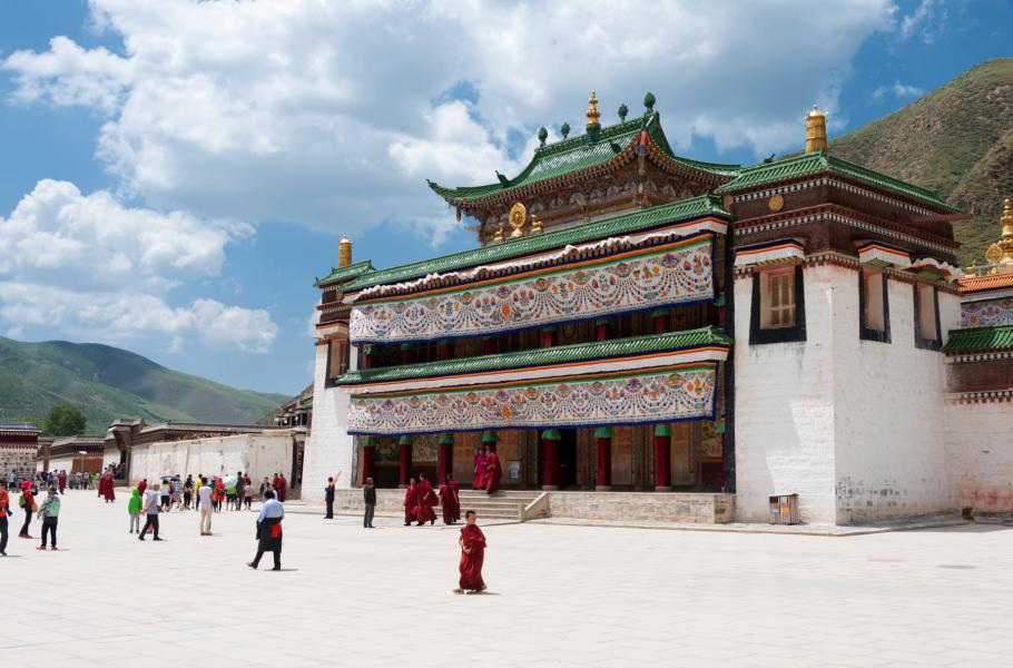 V nadmořské výšce okolo tří kilometrů je blankytná obloha na hony vzdálená „klasické“ Číně, přestože východ oblasti dělí od Pekingu jen pár hodin letadlem. Většina turistů vyráží z Lan-čou v provincii Kan-su, kde si buď pronajmou auto, nebo absolvují tříhodinovou cestu autobusem do kláštera Labrang. Městská zástavba nejprve ustoupí mešitám čínské etnické skupiny Chuej v Lin-sia, které postupně vystřídají širé travnaté pláně a buddhistické chrámy. Poznáte tak, že se blížíte k východu Tibetské náhorní plošiny.