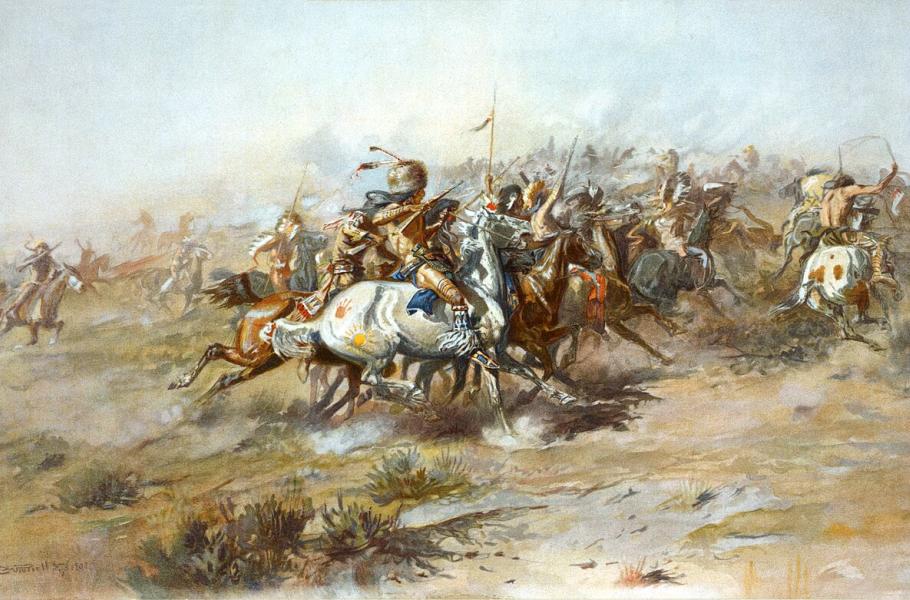 Koncem léta 1853 podnikli Šajeni první výpravu do země „bílých lidí s chlupatými nosy“. (ilustrace: Wikimedia Commons, Charles Marion Russell, PDM 1.0)