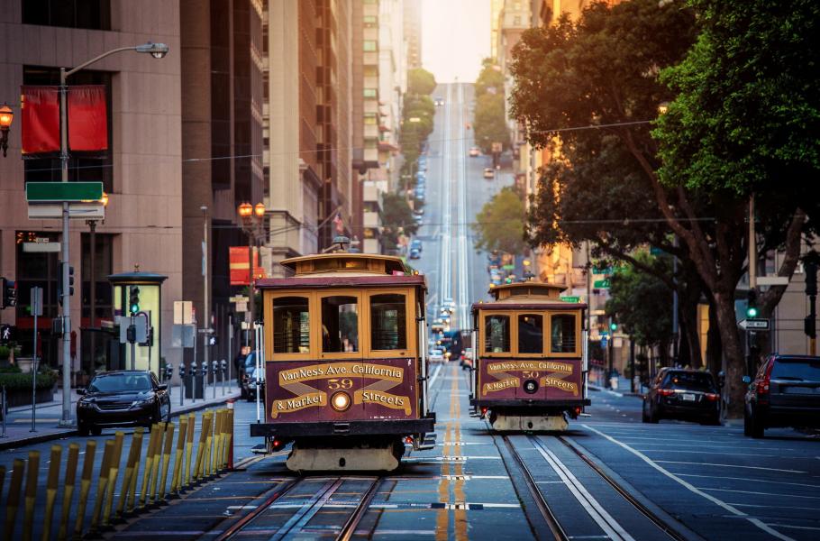 Velká výhoda San Franciska spočívá v tom, že se dá obejít pěšky. Nejlepší je vyrazit z centrálního náměstí Union Square, v jehož blízkosti se rozkládá malebná čínská čtvrť. O pár kroků dál, na křižovatce Powell Street a Market Street, narazíte na konečnou proslulé tramvaje Cable Car, s kořeny sahajícími až do konce 19. století. Z původních osmi tras zůstaly v provozu tři a na zmíněné křižovatce najdete nejatraktivnější linku číslo 60 Powell–Hide. Konečná stanice přitom funguje jako točna, kde se šestitunový vůz nadzvedne do vzduchu a otočí se do protisměru. Není divu, že si netradiční podívanou fotí snad každý turista.