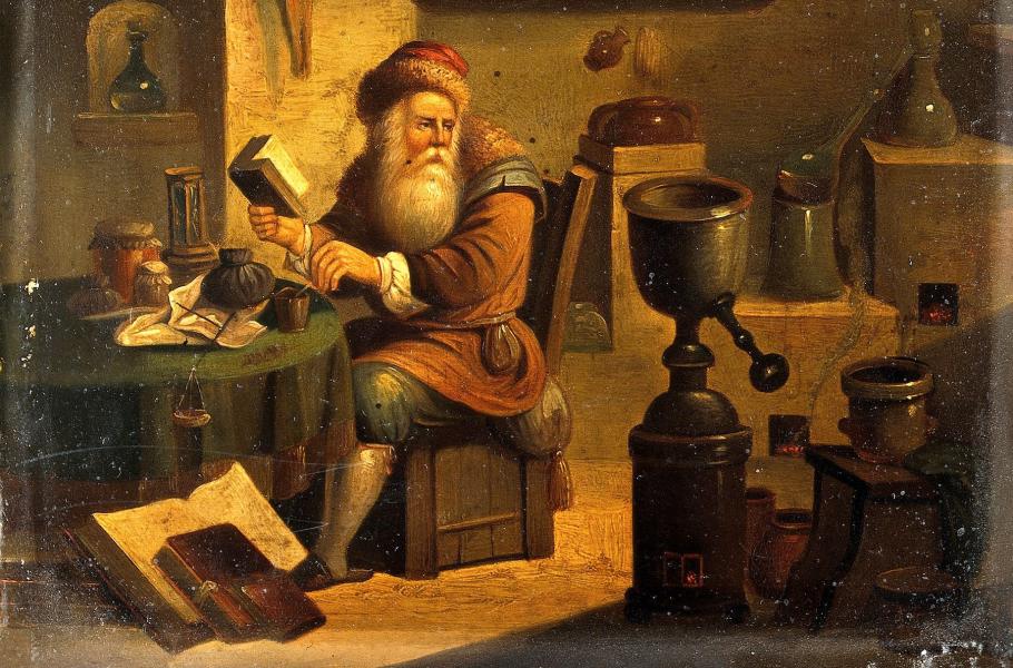 K cílům někdejších alchymistů patřil objev kamene mudrců, který měl kromě přeměny obyčejného kovu ve zlato zajistit i věčné mládí. (ilustrace: Wikimedia Commons, Wellcome Collection, CC BY 4.0)
