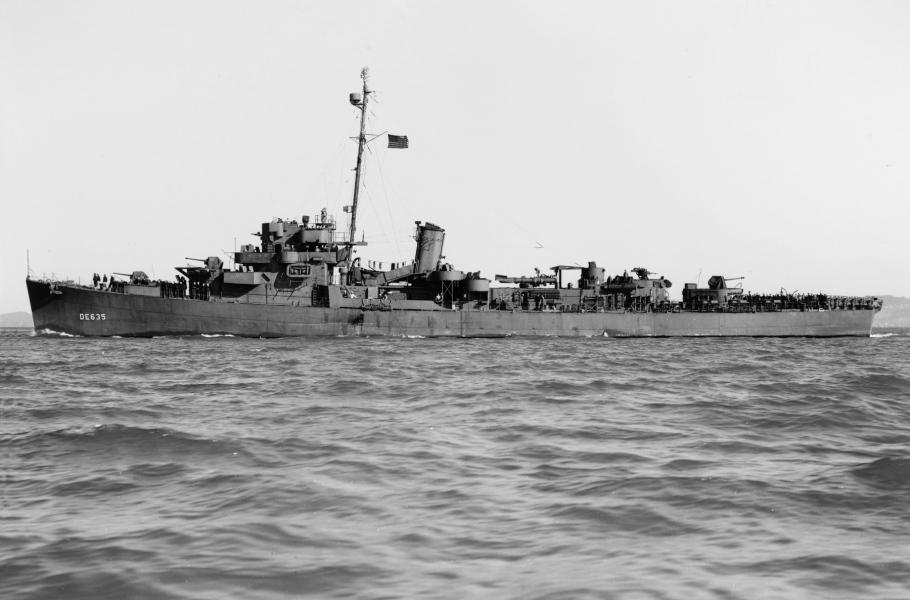 Eskortních torpédoborců se v amerických loděnicích stavěly stovky a od klasických flotilových „bratranců“ se lišily nižší cenou, menšími rozměry, slabší výzbrojí a nižší rychlostí. Jenže obsadit takové množství lodí zkušenými posádkami se prostě nedalo a řada námořníků poprvé spatřila moře až při nástupu na loď. Moc ostřílený nebyl ani velící kapitánporučík Walton Pendleton, který veškeré válečné zkušenosti posbíral během tříměsíční služby na eskortním torpédoborci Smartt. Dokonale „zelený“ England se na frontě objevil v březnu 1944 a v příštích týdnech doprovodil několik konvojů mezi ostrovy Guadalcanal a Espíritu Santo.