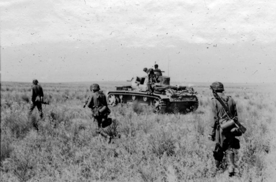 Příslušníci divize SS Wiking postupují v prvních dnech operace Barbarossa na východ. (foto: Wikimedia Commons, Bundesarchiv, CC-BY-SA 3.0)