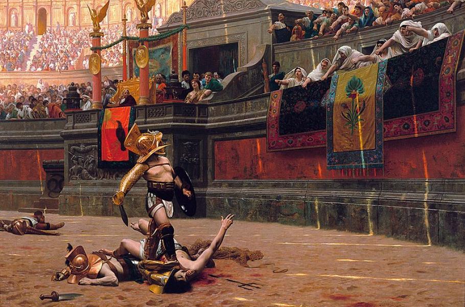 Zápasy vzbuzovaly v Římě prudké vášně. Lidé se hrnuli do ochozů v očekávání krvavé podívané a v hledištích amfiteátrů se mezi návštěvníky pravidelně strhávaly rvačky o nejlepší místa na tribunách. Římané chodili na gladiátorské zápasy z velmi podobných pohnutek, z jakých my dnes sledujeme drsné akční filmy plné násilí, krve a mrtvol. V kině nebo doma u televize hledáme únik z denní reality a čerpáme tu pocit, že hodnoty, s nimiž stojí a padá naše civilizace, nakonec zvítězí. Římané zaháněli podívanou na bojující gladiátory frustraci z bídy, politické nestability, epidemií či útoků barbarských kmenů. Vedle dostatku potravin byla podívaná na zápasy základem spolehlivé formule „chléb a hry“, kterou vládci udržovali masy obyvatel v klidu a obrovskou říši v chodu.