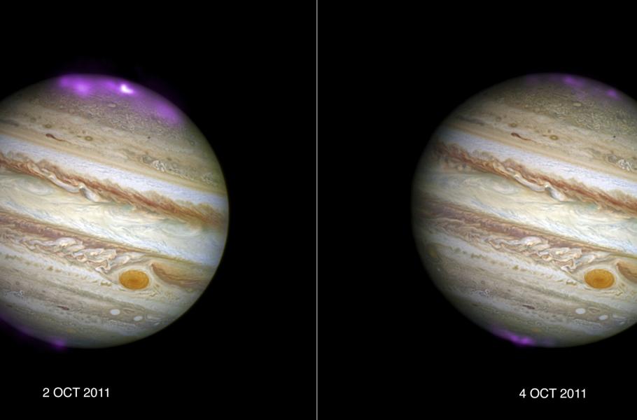 Jak ale ukazuje pozorování observatoře Chandra, ani Jupiter není vůči vlivu Slunce zcela imunní. V roce 2011 se vědcům podařilo zachytit Jupiter právě v okamžiku, kdy k jeho magnetickému obalu dorazil mohutný proud nabitých částic vyvržený silnou sluneční bouří. V okamžiku srážky zazářila na Jupiterových pólech obří polární aurora, osmkrát jasnější než je u této planety běžné a se stonásobnou intenzitou.