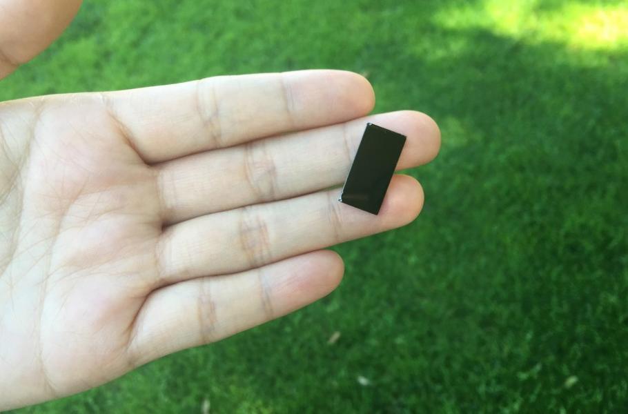 Připomíná malý obdelník černého skla, ve skutečnosti jde ale o důmyslný materiál s nanostrukturami ze sulfidu molybdeničitého. Když jej vložíte do vody a ponecháte ho na Slunci, začnou v něm probíhat intenzivní chemické reakce.