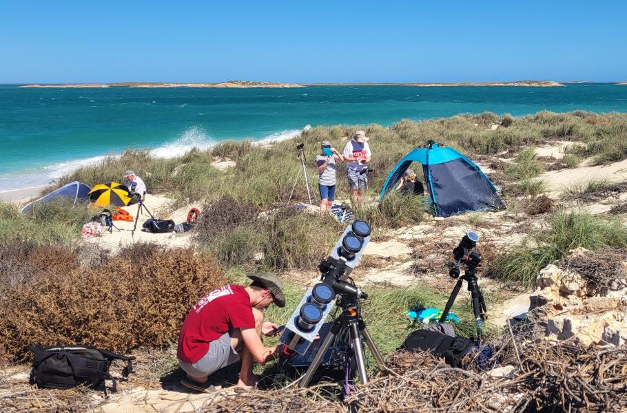 V Austrálii se tým rozdělil na dvě skupiny. Vědci tuto strategii volí zejména kvůli zvýšení šance na úspěšné pozorování, i jediný mrak v nesprávnou chvíli může zhatit celoroční úsilí. Pokud jsou navíc pozorovací místa dost daleko od sebe, dají se ze snímků vyčíst dynamické změny ve sluneční koróně. Letos byl takzvaný pás totality pouze nad malým kouskem pevniny, oba týmy proto byly poměrně blízko u sebe. Hlavní skupina zvolila pro pozorování pevninský Exmouth.