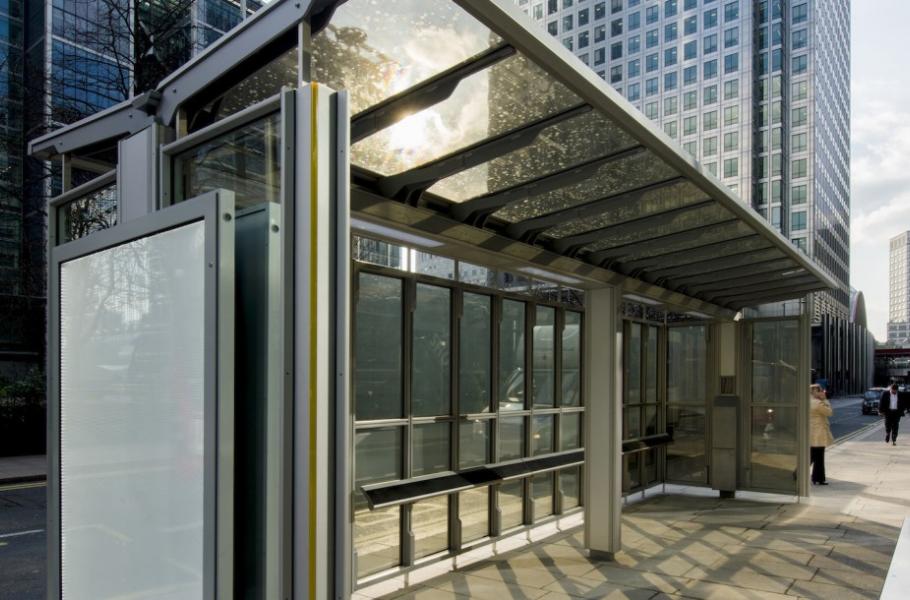 Technologické společnosti Polysolar a Canary Wharf Group slavnostně zahájili provoz první solární autobusové zastávky ve Velké Británii. Při stavbě kryté zastávky hromadné dopravy bylo použito technologicky převratné průhledné fotovoltaické sklo, které funguje i za špatného počasí. Zastávka díky tomu vyrobí tolik elektrické energie, že by to pokrylo spotřebu pro jednu průměrnou londýnskou domácnost.