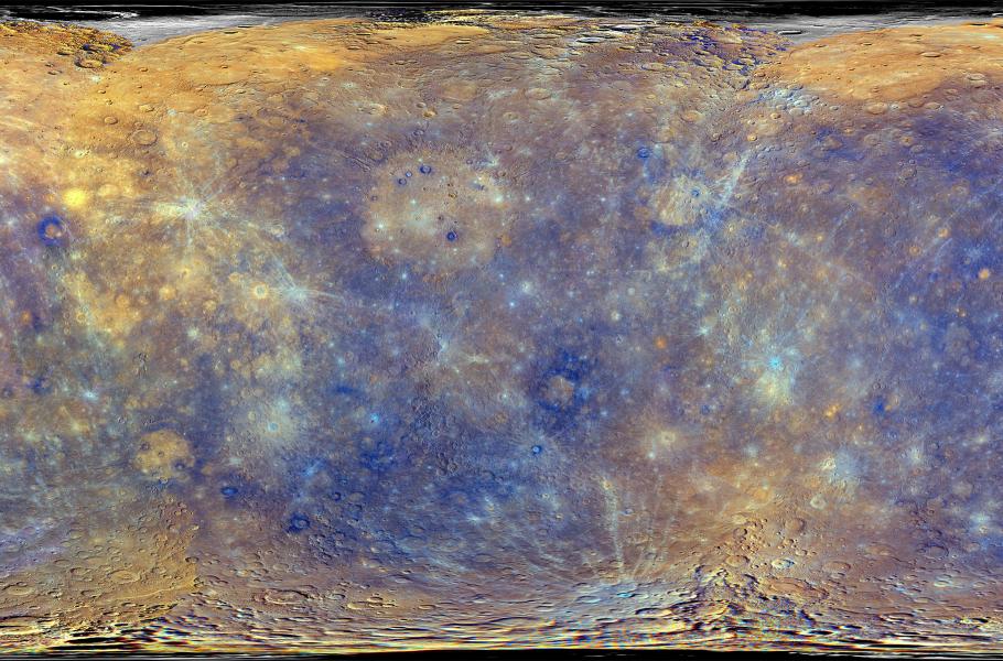 Stejně tak jsme se dozvěděli, že Merkur – na rozdíl třeba od Měsíce nebo Marsu – nemá výrazné geologické rozdíly mezi svými hemisférami. Třeba na Měsíci jsou na straně přivrácené k Zemi tmavé vulkanické planiny, které téměř chybí na straně odvrácené. Na Marsu je zase jižní hemisféra starší a tvoří ji převážně vrchoviny, naopak severní je mladší a tvořená nížinami. Merkur je naproti tomu zcela homogenní. Ovšem pouze geologicky: barevné snímky ukazují pestrost hornin.