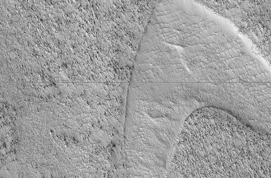 Také nejnovější úlovek jde na konto sondy MRO - tentokrát jde o logo Hvězdné flotily ze světa Star Treku. Vzhledem k tomu, že se kolem podobných nálezů okamžitě vyrojí spousta „zaručených“ konspiračních teorií, objevitelé loga očekávají zprávy o Marťanech, kteří jsou ve skutečnosti fanoušci Star Treku.