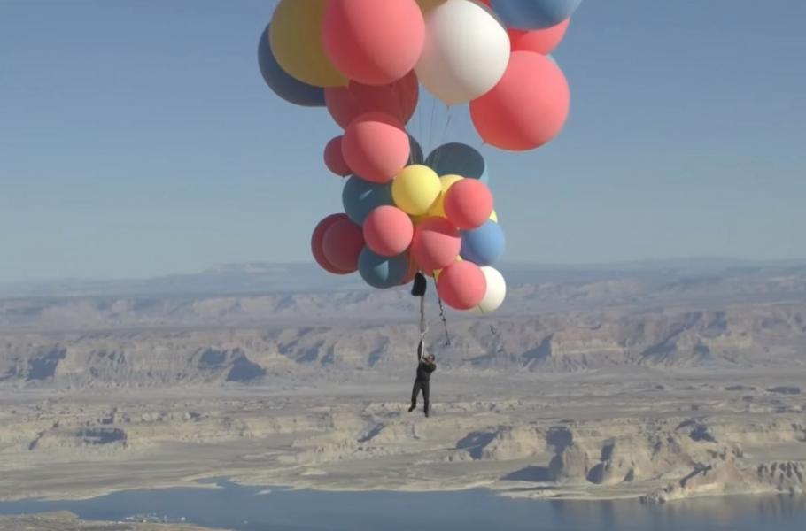 Iluzionista ze Spojených států David Blaine rád napíná své fyzické i psychické síly až na hranici možností. Teď se rozhodl, že si před očima své malé dcery splní svůj vlastní dětský sen. Za pomoci 52 balonů se vznesl do výšky, a unášen větrem se mohl kochat vyprahlou arizonskou pouští. Nakonec vystoupal tak vysoko, že byl nucen použít předem připravenou kyslíkovou masku. Následně se za pomoci padáku snesl bezpečně zpět na zem.