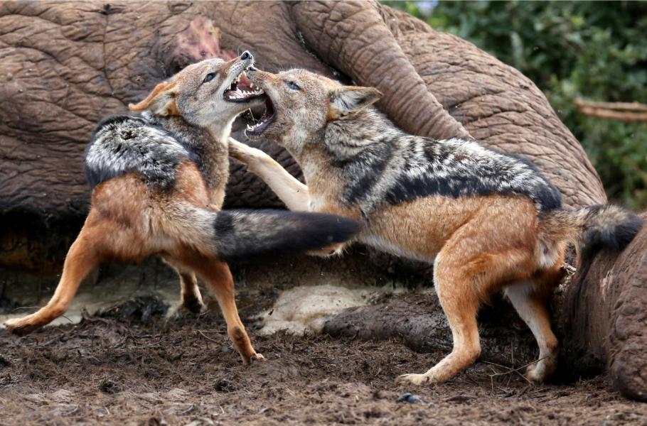 Spolupráce i sobeckost šakalů: U sloní mršiny panuje přísná hierarchie