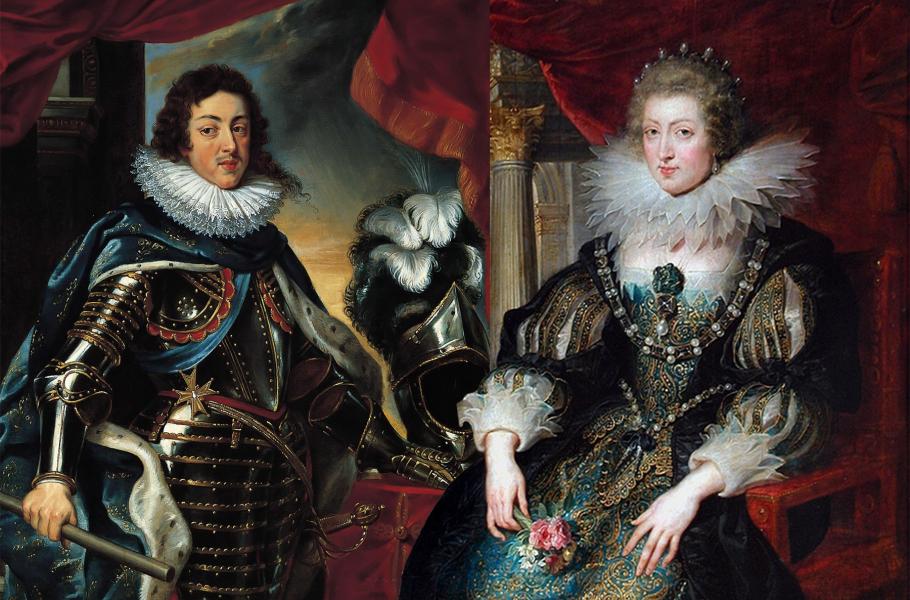 Ludvík XIII. a Anna Rakouská. Kdo byl skutečným otcem jejich potomka Ludvíka XIV.? (zdroj: Wikimedia Commons + Wikimedia Commons, CC0)