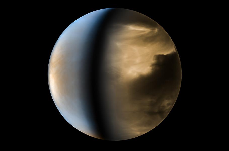 Venuše ve viditelném, infračerveném a ultrafialovém světle, jak ji zachytila japonská sonda Akatsuki. (foto: Wikimedia Commons, JAXA, Kevin M. Gill, CC BY 2.0)