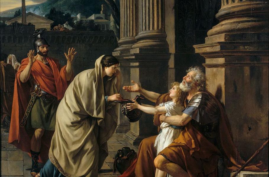 Když byl francouzský obchodník Louis-Maurice David roku 1757 zabit v souboji, převzali výchovu jeho syna Jacquese Louise strýcové, kteří pracovali jako architekti. Ti si přáli, aby synovec pokračoval v jejich kariéře. Mladý David si ale vymohl, že bude studovat malířství. Přestože byl talentovaný, až na čtvrtý pokus získal cenu Prix de Rome, díky které odešel roku 1775 na stipendium do Říma. V té době oslnily město výsledky vykopávek v Pompejích a Herculaneu. Antikizující vlna se projevila mimo jiné rozšiřováním sbírek antických starožitností.