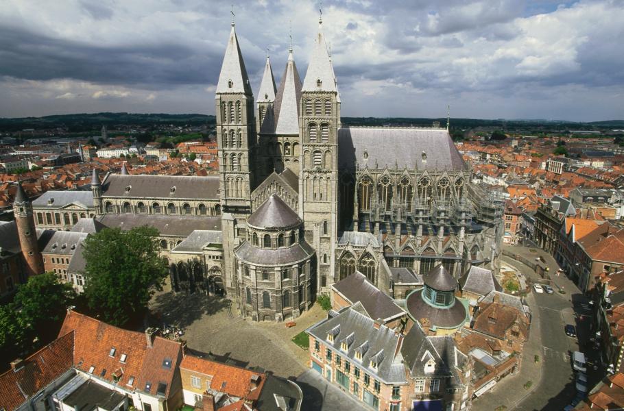 Budování jednoho z nejznámějších belgických svatostánků začalo ve Valonském regionu v provincii Hainaut již někdy v první třetině 12. století poté, co rozsáhlý požár zničil místní biskupství. Úchvatná sakrální stavba leží v srdci starého města, při levém břehu řeky Escaut (česky Šelda). Mimochodem – samotné Tournai, nacházející se asi deset kilometrů od francouzských hranic, má velmi dlouhou tradici: již v 1. století představovalo (tehdy ještě jako Turnacum) významné administrativní a vojenské centrum Římské říše.