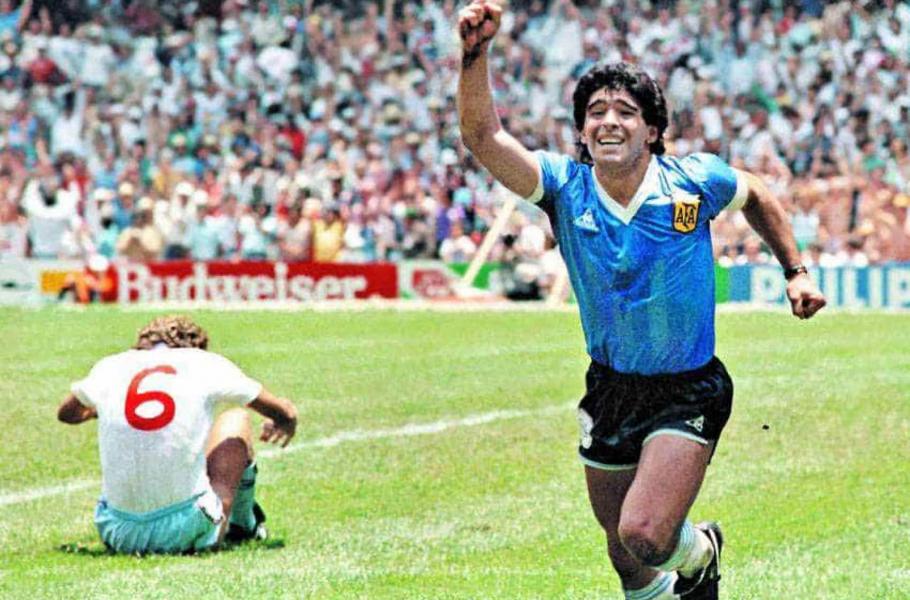 Jeden z nejslavnějších gólů vstřelil Maradona rukou, aniž si toho rozhodčí všimli. Došlo k tomu ve čtvrtfinále MS 1986 proti Německu, když ve výskoku dostihl míč dřív než o dvacet centimetrů vyšší brankář Peter Shilton. Argentinec později tvrdil, že „jestli to byla ruka, byla to ruka boží“. Jeho druhý gól se však zapsal do fotbalové historie zcela po právu. Během desetisekundového sprintu obehrál čtyři bránící Angličany i brankáře a zvýšil skóre na 2:0. Tato branka byla v roce 2002 v hlasování fanoušků vyhlášena gólem století.