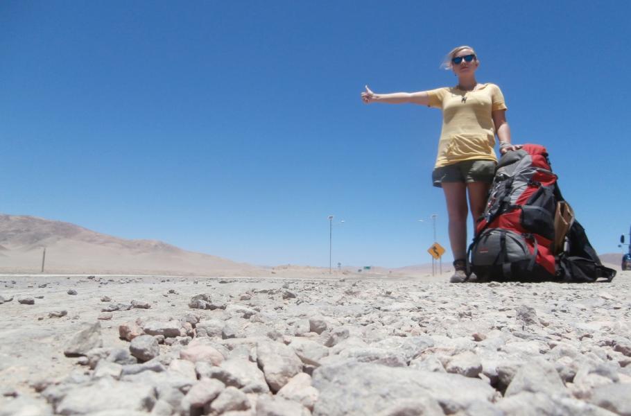 Spořivá a bezpochyby statečná stopařka Iris Veldwijk (24) před pěti lety opustila studia i svůj domov v nizozemském Utrechtu a rozhodla se procestovat svět na vlastní triko a za co nejméně peněz. Procestovala již velkou část Evropy i Asie a momentálně se nachází v Argentině, kde hodlá pokrčovat se stopováním na jih. Iris cestuje se svou kytarou, díky které si dokáže vydělat na stravu, často přespí zdarma u místních, případně po levných hostelech.