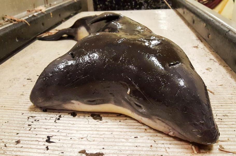 Dvouhlavou sviňuchu objevili nizozemští rybáři nečekaně v Severním moři. Již při vyproštění ze sítě byla mrtvá a námořníci, šokovaní obskurním nálezem, zpanikařili: Nebyli si jistí, zda není ilegální nechat tvora na palubě. Proto ho nafotili a vrátili moři. Biologové pak potvrdili, že se jedná o vůbec první objevenou dvouhlavou sviňuchu v historii. Ze snímků dál vypozorovali, že jde o novorozeného samce: Podle ploutví a nerozevřených dýchacích otvorů je zřejmé, že zvíře zemřelo při porodu. Vzniklo nejspíš spojením dvou embryí.
