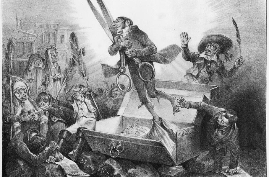 Císař Josef II. cenzuru omezil, ale vedl boj proti knižnímu braku. (ilustrace: Wikimedia Commons, J. J. Grandville, PDM 1.0)