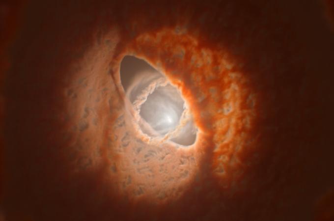 Supermasivní černá díra v galaxii Kružítko se ukázala jako vybíravý strávník, který většinu potravy z okolního vesmíru vyplivuje zpět.