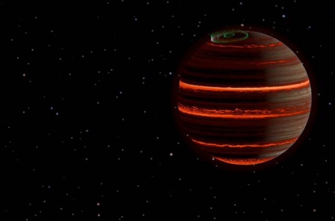 Vesmírný teleskop Jamese Webba odhalil na potulné exoplanetě SIMP-0136 extrémně horkou atmosféru s rovnoměrnými silikátovými mraky a polárními zářemi připomínajícími ty pozemské.