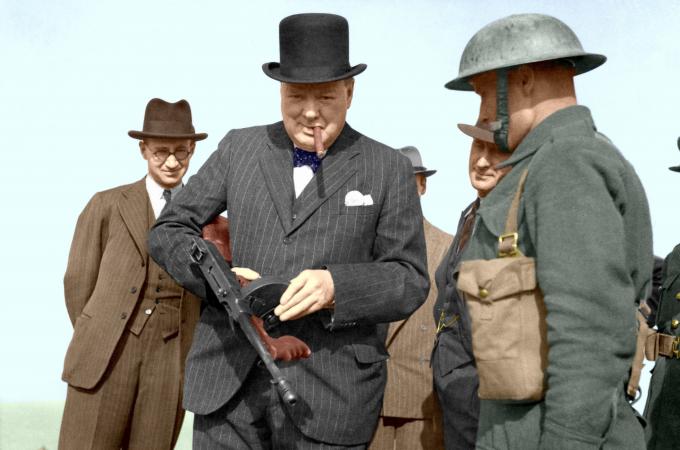 Buldok v roli krvežíznivého mafiána: Winston Churchill a Tommy Gun