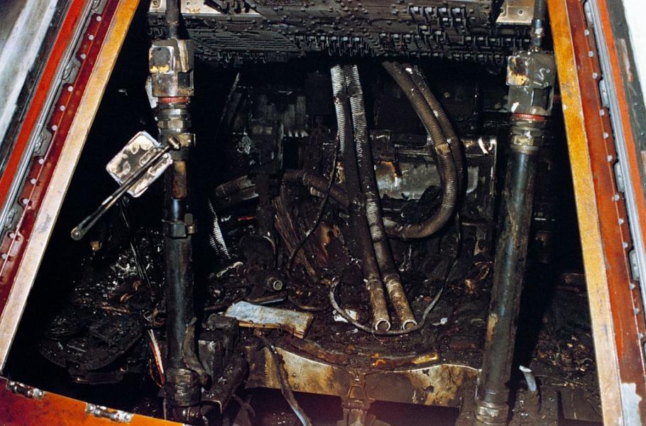 Požár při pozemním testu kabiny Apollo 1 zabil tři astronauty, kteří měli o tři neděle později v lodi startovat do vesmíru. Byli to Virgil „Gus“ Grissom, Edward White a Roger Chaffee.