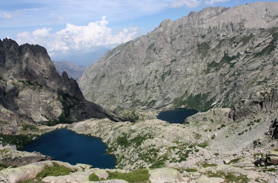 Díky květinám se vám bude zdát, že jste nahoře co by dup. V sedle se napojíte na legendární trasu GR 20, která prochází napříč Korsikou. Také odtud uvidíte krásně obě jezera a budete se moci do sytosti pokochat pohledem na zvrásněnou skalnatou tvář ostrova, ve které jsou jako korálky rozseta maličká ledovcová jezírka.