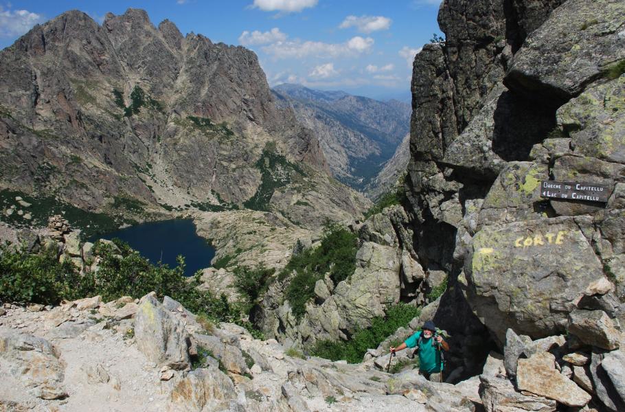 Nejvyšší horou ostrova je Monte Cinto (2 706 m n. m.), na jejíž vrchol vede turistická stezka. Ta se ale pod vrcholem údajně rozpadá do neznatelných chodníčků, takže je nutné směr hledat. Navíc je trek zdlouhavý (délka výstupu a sestupu se udává na 10–11 hodin) a prý horolezecky nezáživný. Možná i proto jsme si tuto trasu nechali s klidem ujít. Pokud byste se vy sami nenechali odradit a chtěli si vychutnat pohled z nejvyššího korsického bodu, nenechejte se ošálit slunečnou tváří ostrova. Před několika lety při výstupu na Monte Cinto „nalehko“ zemřelo sedm lidí, protože je v červenci zastihla neočekávaná sněhová bouře! Místy se sníh drží celý rok.