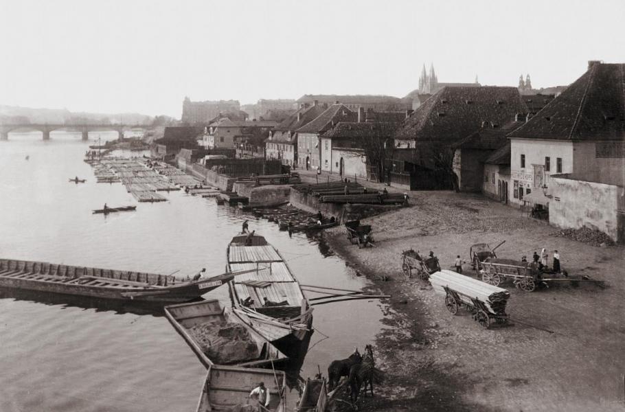 Strašidlo se projevovalo nedaleko starého patricijského patrového domu dřevařské rodiny Procházkovy, který stával při ohradě bokem šikmo k řece. (foto: Muzeum města Prahy, CC0)
