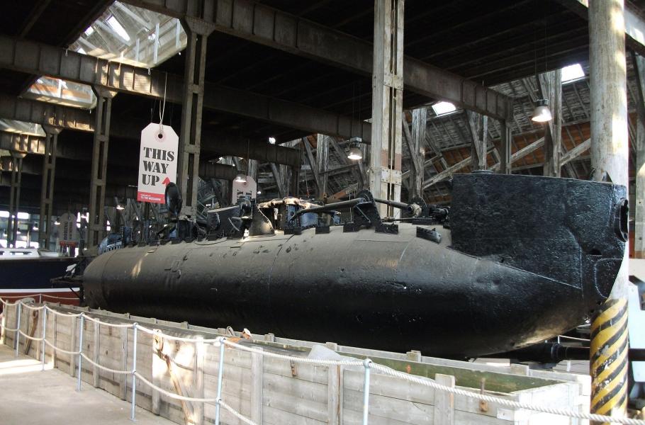 XE-8 byla po válce potopena jako cílové plavidlo, ale roku 1973 ji vyzdvihli a dnes slouží coby muzejní exponát. (foto: Wikimedia Commons, Sandpiper, PDM 1.0)