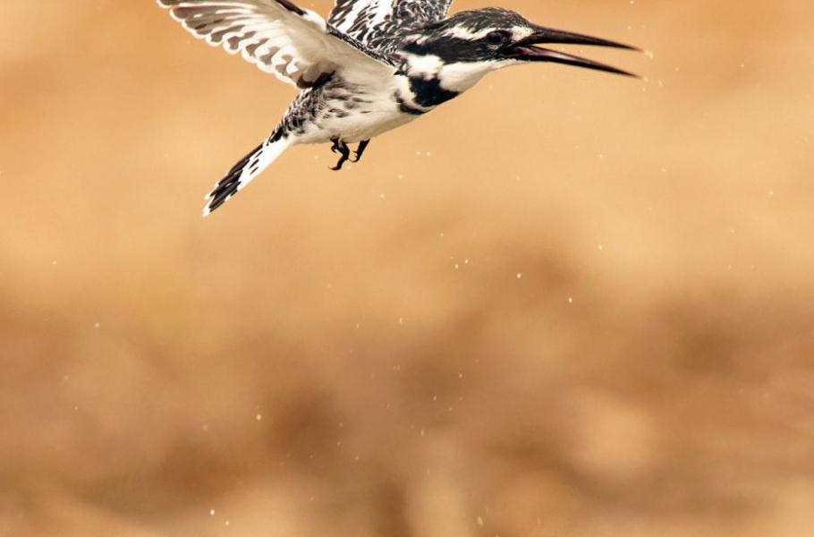 Uganda dělá čest své pověsti ornitologického ráje s více jak 1 000 zaznamenanými druhy opeřenců. Viděli jsme jich spousty a mezi nejhojnější patřil málo barevný, nicméně svou akčností velmi atraktivní rybařík jižní (Ceryle rudis), který stejně jako následující rybařík velký patří do podčeledi vodních ledňáčků (Cerylidae). V Ugandě byly počty rybaříků jižních opravdu neuvěřitelné. Snad na každých 15 metrech řeky seděl minimálně jeden. Tento nenápadný černobílý ptáček se ozývá vysokým chřestivým „čik- čik- čik“ a je asi 25–27 cm velký. Samec má na hrudi dva tmavé pruhy, samice jen jeden.