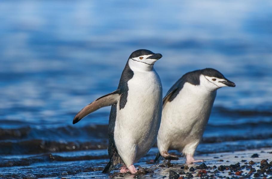 Tady si tučňáci uzdičkoví lebedí – jejich výstupu na souš v tomto případě nestojí v cestě žádné krkolomné skály, místo toho jen pozvolný svah oblázkovo-písčité pláže.