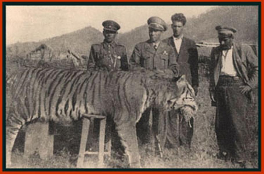 Ruská armáda dostala příkaz zabít všechny tygry v oblasti Kaspického moře, což se víceméně podařilo. Jejího příkladu následovali farmáři, kteří začali čistit lesy a pěstovat rýži a bavlnu. Zbylí tygři tak byli vytlačeni do hustých lesů, mokřin a nakonec do hor, kde dlouho nepřežili. Existují neověřené údaje o jejich výskytu ještě v padesátých letech v oblasti zvané Tygrovaja Balka v Tádžikistánu.